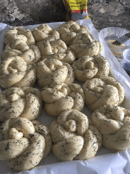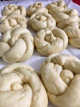 - Place shaped dough on a parchment paper lined baking/cookie sheet tray. Allow to rise a bit.